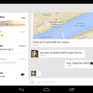 Hangouts brings one-on-one and group conversations to life with photos, emoji, and video calls for free. Connect with friends across computers, Android and Apple devices. Brought to you by Google+.