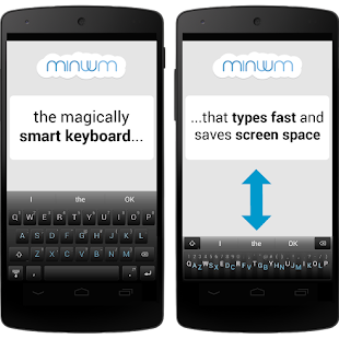 Most virtual keyboards take an approach similar to cramming a full typewriter into a touchscreen device. Resulting keyboard apps cover up half the usable touchscreen space (or more), obstructing your content. Minuum gives you back your screen space by minimizing the keyboard.