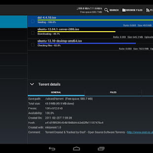 tTorrent is simply the best bittorrent (P2P) client for Android based devices. Download large files, like movies, music albums, software programs and other entertaimnet media to your phone or tablet.