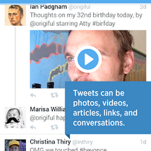 • Discover what’s happening. Get real-time stories, pictures, videos, conversations, ideas, and inspiration all in your timeline.