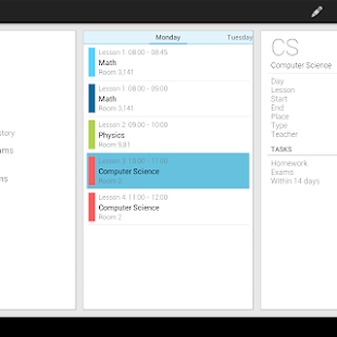 Timetable is the most beautiful and intuitive app on Google Play for managing your school or university life. Save your timetable and all tasks from homework to exams. You only need to enter them once, because Timetable syncs across all your Android devices. Often forget to turn down your phones volume? No problem the app automatically mutes your phone during lessons.