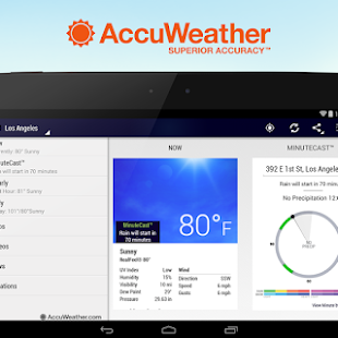 Stay connected to the latest weather conditions with AccuWeather Platinum. This ad free, customizable app features the new AccuWeather MinuteCast™, the leading minute-by-minute weather forecast, hyper-localized to your exact street address. AccuWeather offers the same Superior Accuracy™ and great experience across all Android smartphones and tablets.